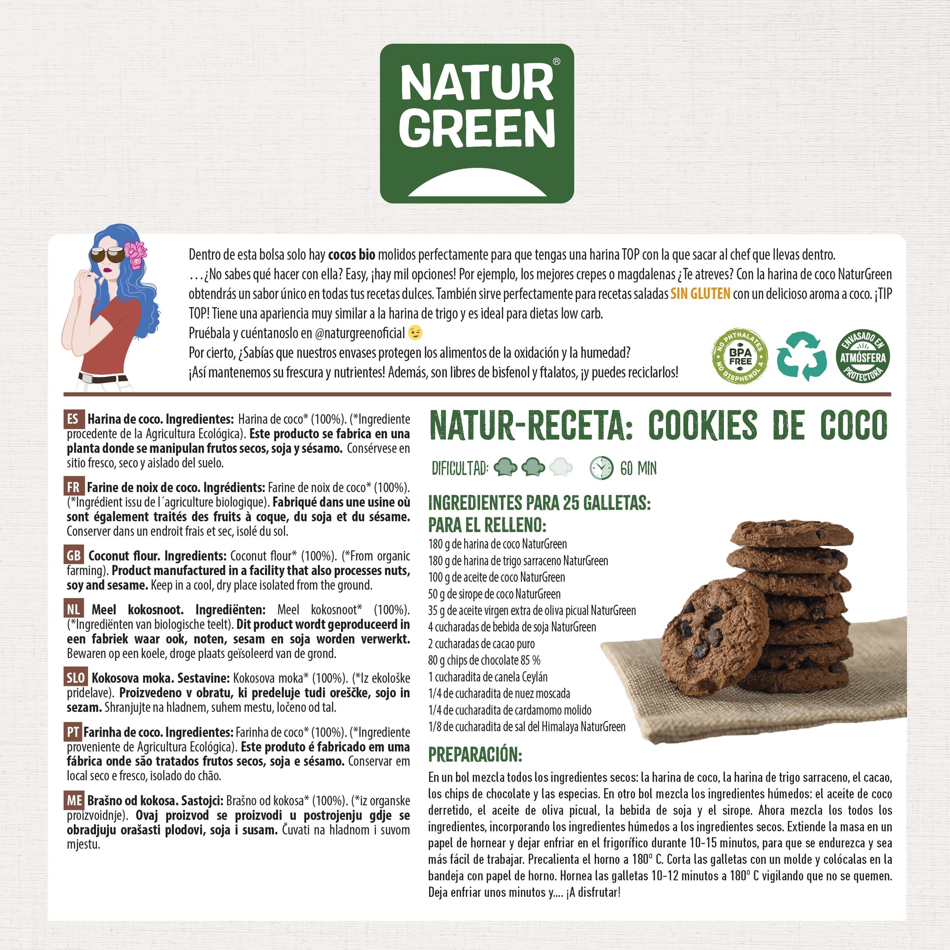 La harina de coco ecológica de NaturGreen es rica en fibra y en hidratos de carbono, por lo que es favorable para nuestro sistema digestivo y suele ser bien tolerada. Es poco conocida, pero puedes utilizarla en una gran cantidad de recetas, al igual que otras harinas más convencionales. Por si fuera poco, la harina de coco no contiene gluten, así que puede ser añadida en recetas para personas celíacas.
