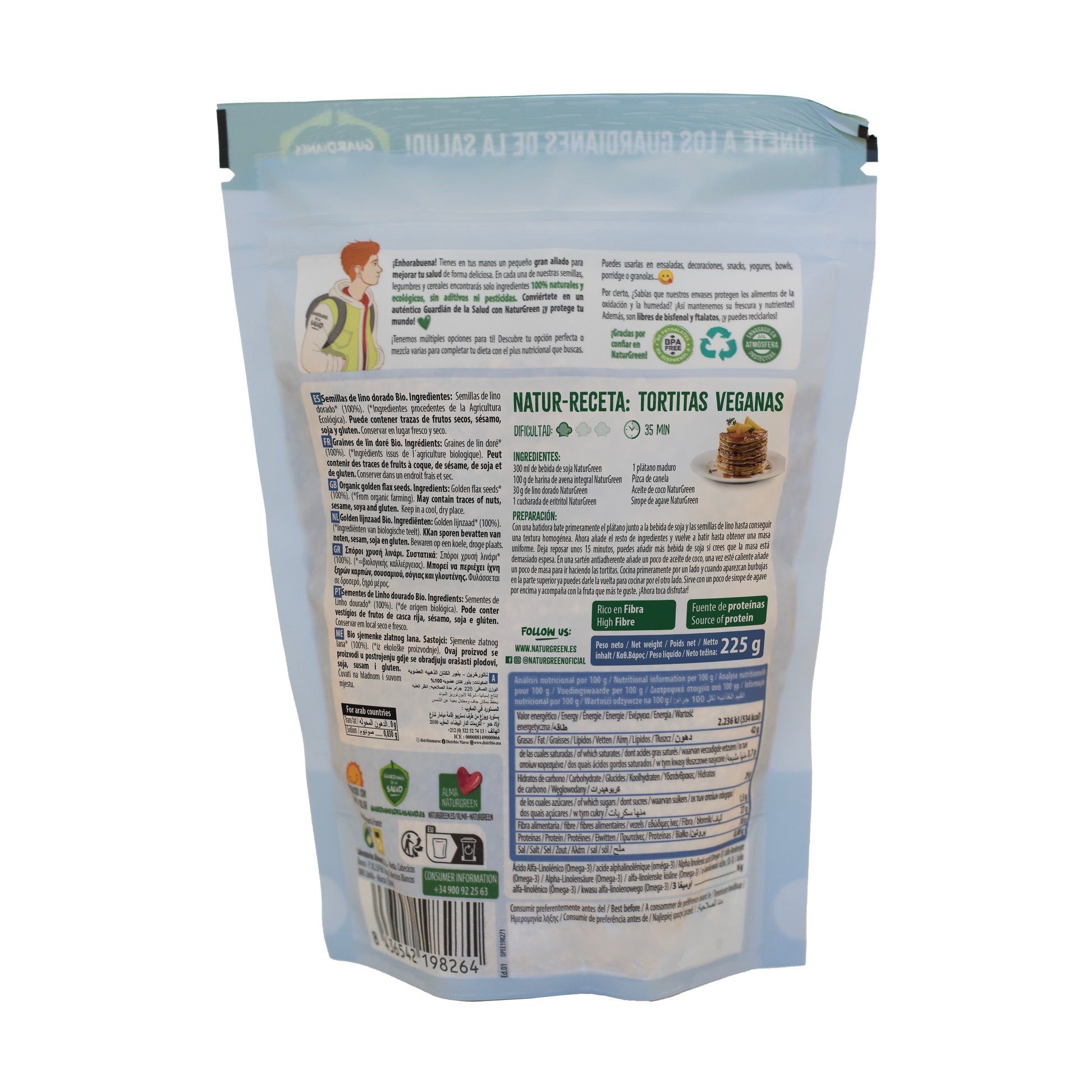 Las semillas de lino dorado ecológico 225g de NaturGreen son perfectas para acompañar ensaladas o para tomar como aperitivo.