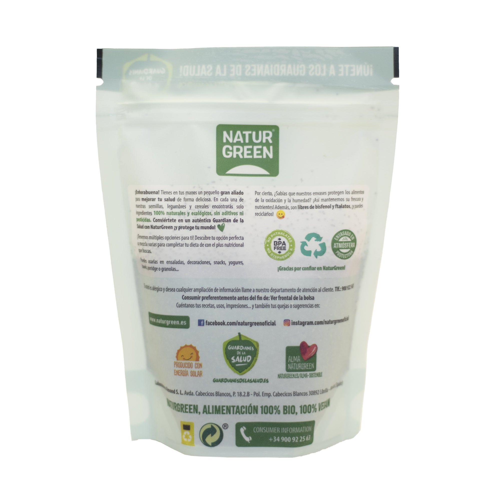Procedentes de cultivo ecológico, estas semillas no contienen aditivos ni conservantes, manteniendo su pureza y calidad. Además, son aptas para veganos, sin gluten y sin lactosa, siendo una opción ideal para una alimentación saludable y equilibrada.